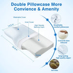 High density memory foam keeps the pillow supportive and comfortable. The ergonomic design is made from the natural curve of the head and neck - keeping the body in a comfortable state and reduces neck and back pain and alleviates shoulder stiffness. The high quality pillowcase fabrics are washable and durable. The front and rear sides of the pillow are of different heights to accommodate different sleeping postures. Wonderful gift for friends and family!